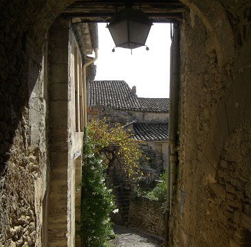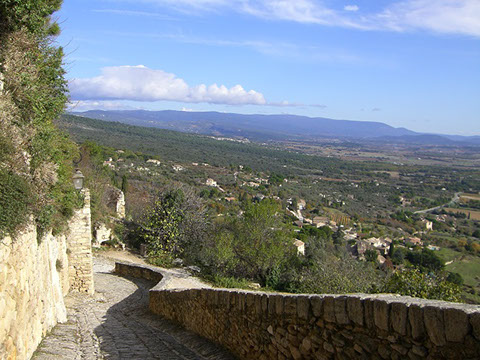 村の中心そのものはとても小さく、歩いても20分程で周れるくらいだが、石畳で入り組んだ路地は起伏も激しくまるで迷路に迷い込んだかのよう。至る所に城壁や家屋の一部を通り抜けるようなトンネル?もあり、この村へ攻め込むことはさぞ難しかった事だろうと感心してしまう。そんな迷路を迷いながら歩いていると、突然視界が開け、豊かなプロヴァンスの風景を一望できる。すべてが石造りの乾いた印象のゴルドから、緑豊かなプロヴァンスの大地を眺めると、何だかとても幸せな気分になる。
