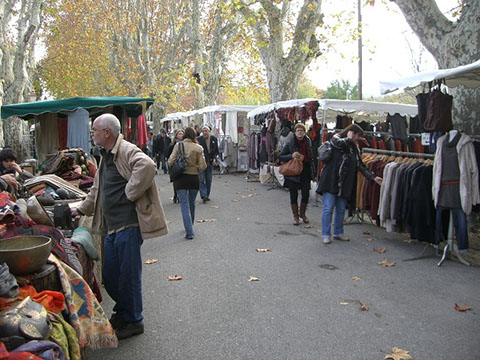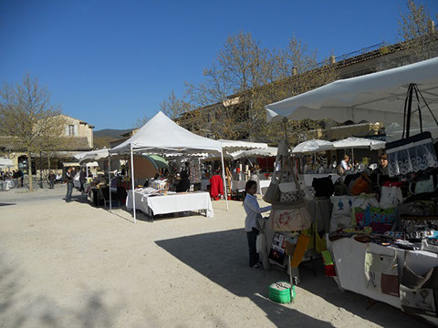 毎週金曜日に開かれるマルシェには、周辺から思い思いのアートや雑貨や食料品が集まり、それはそれは楽しい雰囲気。数ある南仏のマルシェの中でもとても人気のあるマルシェだ。みんな、自分の商品・作品を誇らしげにならべ、お客との会話を楽しんでいる。ちょっとかわいい焼き物の鉢を買うと、「私たちは隣村にすんでいるのよ。今度遊びにいらっしゃい」 なんて言葉もかけられたり。