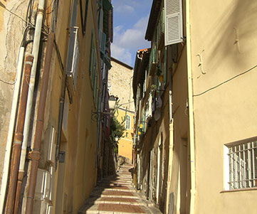 いつも多くの人々で賑わうリパブリック通りを抜け,石畳の細い路地を少し登ると、打って変わって静かな雰囲気に包まれた旧市街に出る。黄色やオレンジ色に塗られたバロック様式の街並みはとても美しく、他のコートダジュールの町や村とはずいぶん異なる雰囲気を醸し出している。イタリア国境に近いこともあり、フランスとイタリア双方の雰囲気が融合しているからなのだろうか。