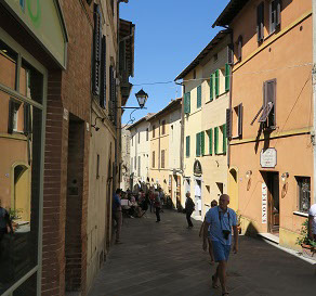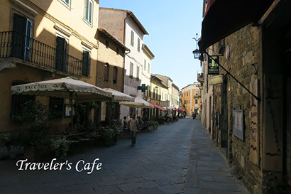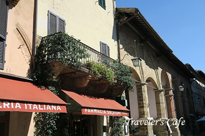 そしてモンタルチーノの町は正にワインの町。中世の雰囲気を色濃く残した街並みの至る所にエノテカ(ワインセラー)やレストランが点在していて、どのエノテカでも何種類ものブルネッロワインを販売している。ブルネッロ以外にも、フランス式にカベルネソービニオンとメルローで作られたスーパートスカーナや近隣の有名な醸造地、キャンティーやモンテプルチアーノなどのワインも置いてある。エノテカの数がモンテプルチアーノの町よりも圧倒的に多いのは、やはりブルネッロの名声のお陰であろうか。