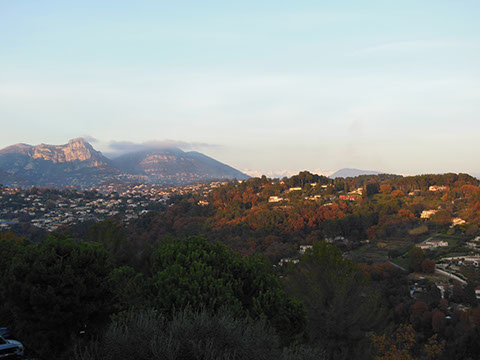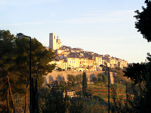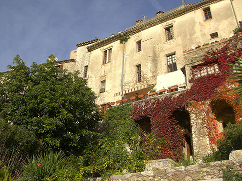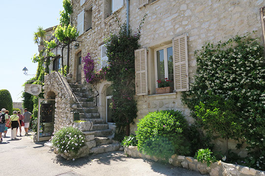 村の端に出ると、頂きの上に作られた鷲ノ巣村であることを実感する美しい風景が待っている。彼方には雪をかぶったアルプスの山並みも見渡せ、割と荒々しい自然の中に、ぽつん、ぽつんとおしゃれな家が点在しているのが見える。心地よい風をうけながら見晴らす風景はまた格別だ。